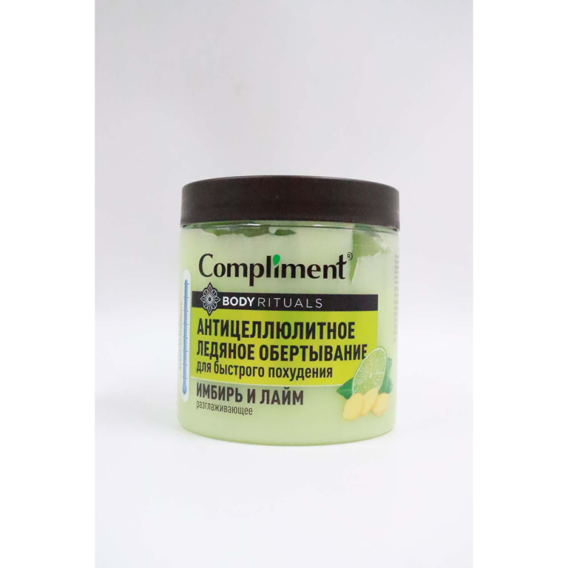 Обертывание «Антицеллюлит. лед. Compliment» с экстрактом имбиря и лайма - это идеальное средство для борьбы с целлюлитом и улучшения состояния кожи. Его уникальная формула помогает улучшить микроциркуляцию, уменьшить объемы и улучшить упругость кожи. Просто нанесите обертывание на проблемные зоны, заверните пленкой и оставьте на 30-40 минут. Для максимального эффекта рекомендуется использовать 1-2 раза в неделю. Попробуйте это обертывание и наслаждайтесь результатами уже через несколько применений!