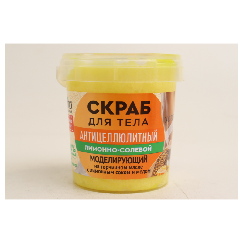 Скраб для тела «Лимонно-солевой» от Народные Рецепты в удобной банке объемом 155 мл - это освежающее и тонизирующее средство для ухода за кожей. Благодаря содержанию лимонного экстракта и морской соли, этот скраб бережно отшелушивает ороговевшие клетки кожи, придавая ей гладкость и мягкость. Экстракт лимона освежает и тонизирует кожу, делая ее более упругой и сияющей. Регулярное использование скраба помогает поддерживать здоровое состояние кожи и придает ей приятный цитрусовый аромат.