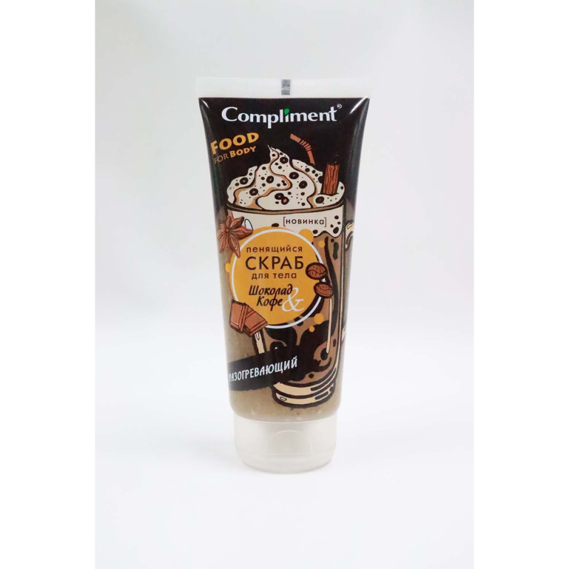 Пенящийся скраб для тела Compliment «Шоколадкофе разогревающий» объемом 200 мл - это насыщенный уход для кожи, который обладает ароматом шоколада и кофе. Его уникальная формула с эффектом разогрева помогает отшелушить ороговевшие клетки, стимулирует кровообращение и улучшает тонус кожи, делая ее более гладкой и упругой. Пенящаяся текстура скраба обеспечивает бережное и эффективное очищение, оставляя кожу нежной, увлажненной и приятно ароматизированной.