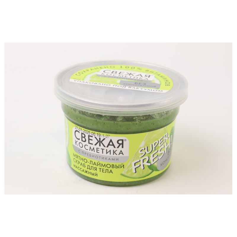 Скраб «Мятно-лаймовый» для тела от «Свежая Косметика» в объеме 180 мл - это освежающее и тонизирующее средство для массажа. Благодаря сочетанию мятных и лаймовых экстрактов, он помогает бережно отшелушивать кожу, стимулируя ее циркуляцию и придавая ощущение свежести и легкости. Регулярное применение этого скраба делает кожу более мягкой, упругой и приятно ароматизированной, оставляя после себя чувство освежения и ухода.