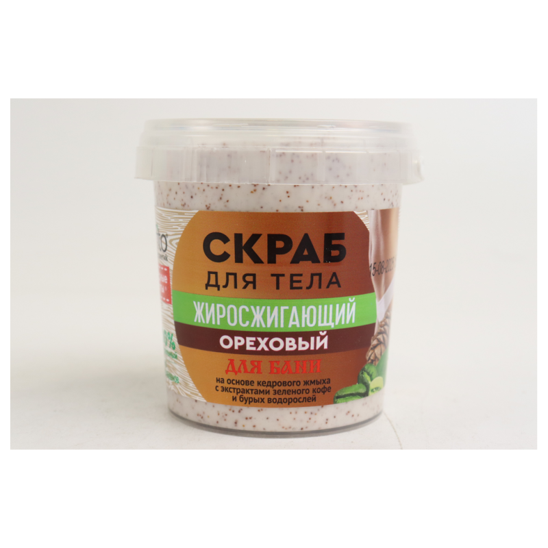 Скраб для тела «Орех жиросжигающий для бани» от Народные Рецепты в удобной банке объемом 155 мл - это инновационное средство для ухода за кожей, разработанное специально для использования во время процедур в бане. Его уникальная формула сочетает в себе ореховые частицы с жиросжигающими свойствами и натуральные экстракты, способствующие очищению и увлажнению кожи. После применения скраба ваша кожа станет более мягкой, увлажненной и приятно ароматизированной, готовой к дальнейшим процедурам в бане.