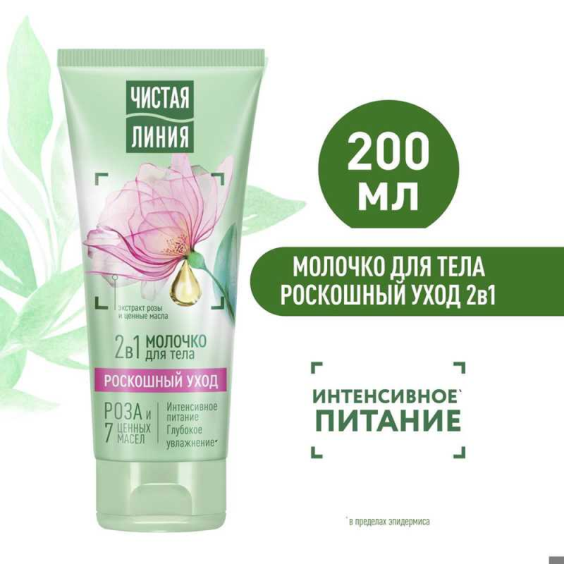 Молочко для тела «Чистая Линия Интенсивное питание» в упаковке объемом 200 мл предназначено для глубокого увлажнения и питания кожи. Обогащенное питательными компонентами, оно помогает смягчить и увлажнить кожу, делая ее более мягкой и эластичной. Применение этого молочка обеспечивает коже интенсивное питание, придавая ей здоровый и ухоженный вид.