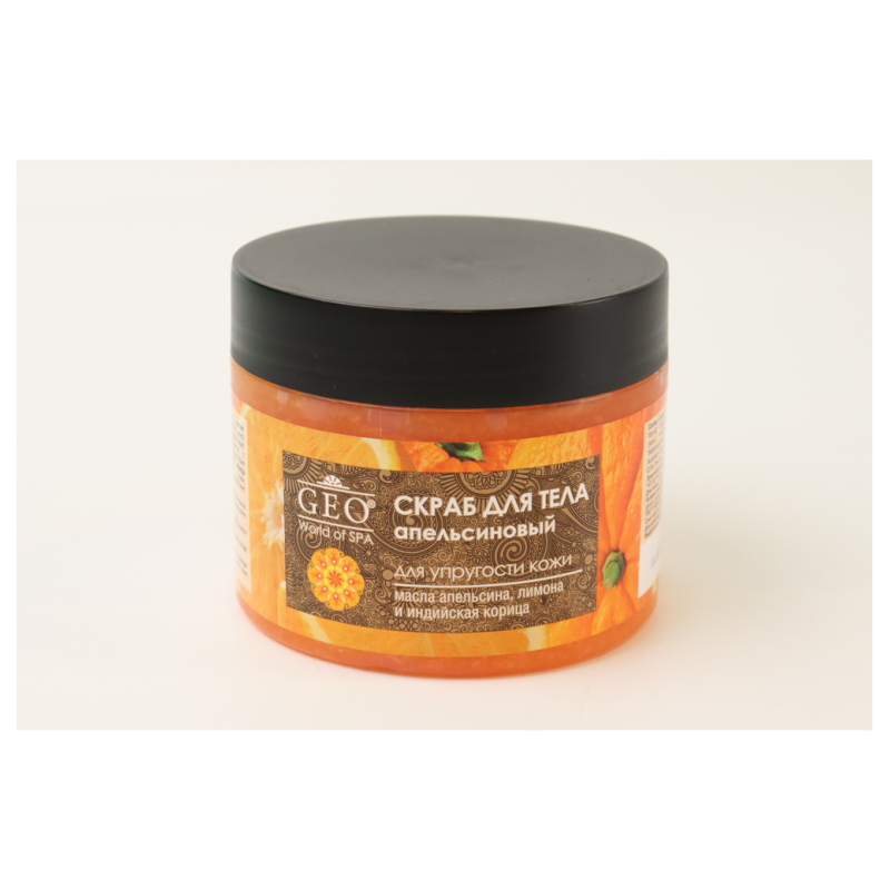 Скраб Geo «Для тела апельсиновый для упругости кожи» представлен в упаковке объемом 300 мл Этот скраб обогащен апельсиновым экстрактом, который помогает улучшить упругость и тонус кожи. Содержащиеся в составе скраба мелкие абразивные частицы деликатно отшелушивают ороговевшие клетки, способствуя регенерации кожи и придавая ей гладкость и мягкость. При регулярном использовании скраба Geo ваша кожа станет более упругой, эластичной и здоровой.