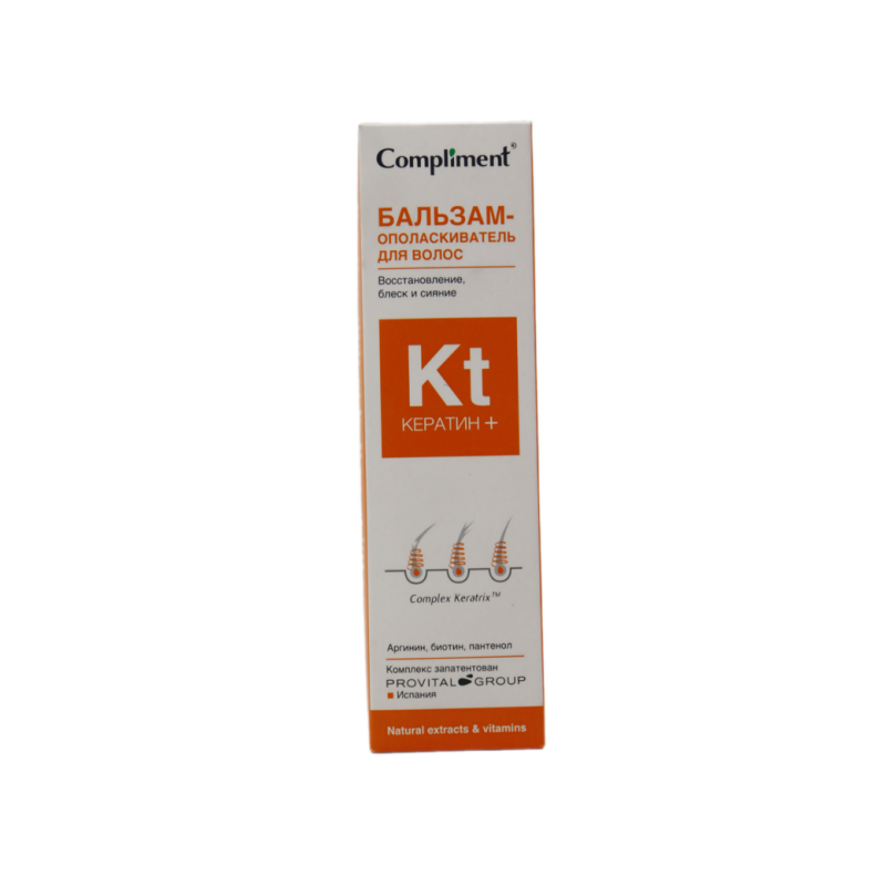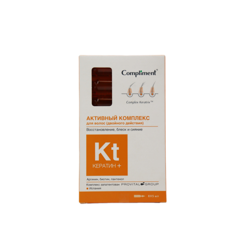 Уникальный комплекс для волос с кератином Compliment обеспечивает активное восстановление, блеск и сияние вашим волосам. Этот продукт поможет вам достичь идеального состояния ваших волос, делая их здоровыми, сильными и блестящими. Просто нанесите комплекс на влажные волосы, массируйте и оставьте на несколько минут, затем тщательно смойте. Используйте его как дополнительный уход или в качестве маски для волос. Попробуйте этот комплекс с кератином сегодня и убедитесь в его удивительных свойствах!