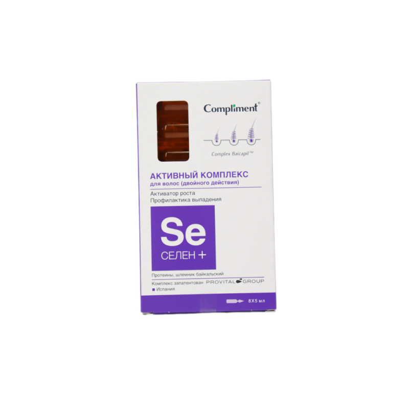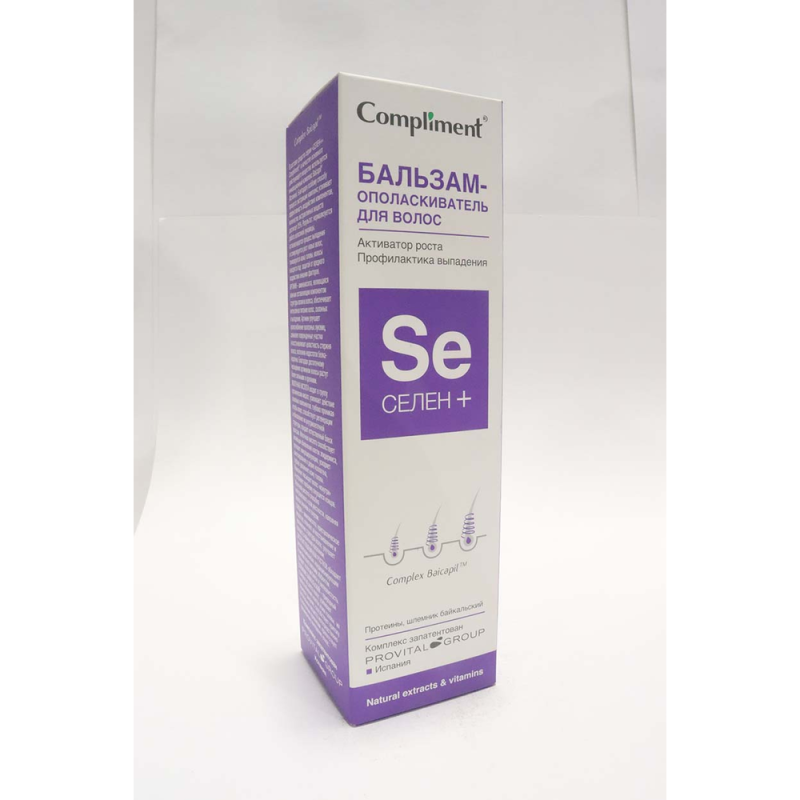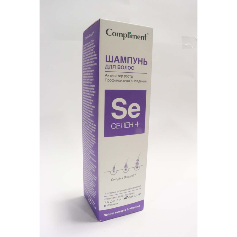 Шампунь Compliment с селеном для волос - активатор роста. Уникальная формула, обогащенная селеном, помогает укрепить волосы и стимулирует их рост. Подходит для всех типов волос. Просто нанесите на влажные волосы, массируйте в течение нескольких минут, затем тщательно смойте. Рекомендуется использовать 2-3 раза в неделю для лучших результатов. Попробуйте этот шампунь и наслаждайтесь здоровыми и красивыми волосами!