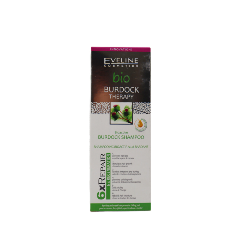Шампунь Eveline с экстрактом репейника - идеальное решение для укрепления и увлажнения ваших волос. Его уникальная формула биоактивных компонентов помогает бороться с ломкостью и сухостью, делая ваши волосы мягкими и блестящими. Просто нанесите небольшое количество шампуня на влажные волосы, массируйте в течение нескольких минут, затем тщательно смойте. Результатом будет здоровые и красивые волосы, которые вы будете гордиться. Попробуйте сегодня и ощутите разницу!