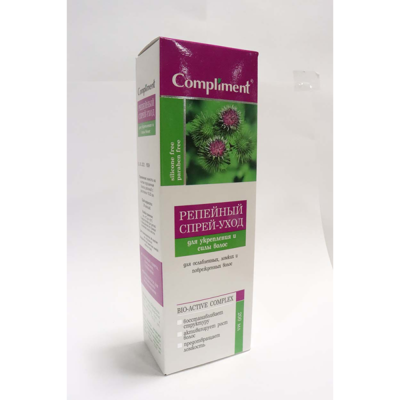 Спрей ухода Compliment с экстрактом репейника предназначен для укрепления и увлажнения волос. Его легкая текстура обеспечивает быстрое впитывание, не утяжеляя пряди. Спрей помогает укрепить структуру волос, делая их более сильными и здоровыми. Просто распылите на влажные волосы перед укладкой или на сухие волосы для придания дополнительного блеска и увлажнения. Попробуйте использовать спрей утром перед укладкой или вечером перед сном для улучшения состояния волос. Укрепите свои волосы с помощью спрея ухода Compliment и наслаждайтесь здоровыми и красивыми локонами каждый день!