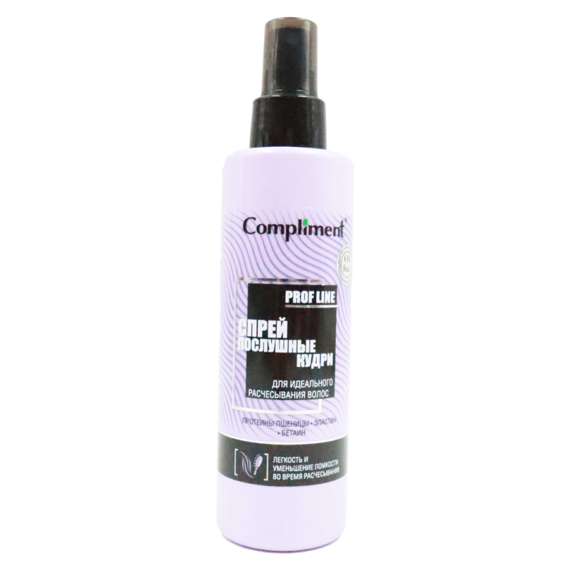 Спрей для волос Compliment «Послушные кудри для идеального расчесывания» в упаковке 200 мл - это специально разработанное средство для ухода за волосами, обеспечивающее легкое расчесывание и создание прекрасных кудрей. Обогащенный активными компонентами, спрей помогает сделать ваши кудри более послушными, гладкими и эластичными. Его легкая текстура обеспечивает равномерное нанесение без утяжеления волос, делая их более ухоженными и стильными.