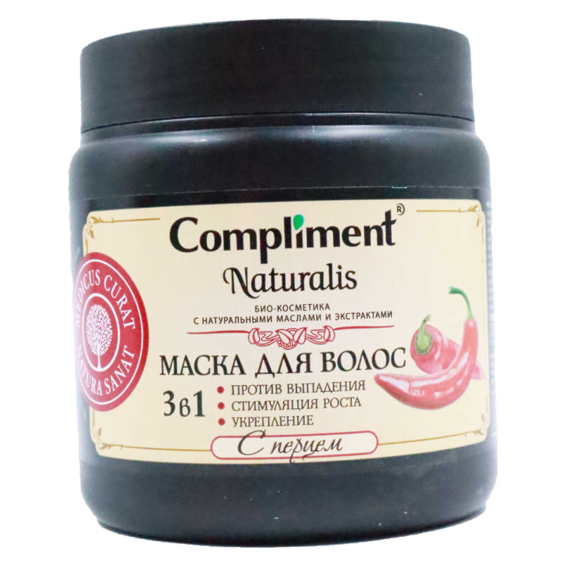 Маска для волос Compliment Naturalis с перцем 3 в 1 против выпадения волос объемом 500 мл разработана для интенсивного ухода за волосами и борьбы с их выпадением. Содержит экстракт перца, который способствует улучшению кровообращения в области кожи головы, стимулируя рост волос и предотвращая их выпадение. Кроме того, маска питает и увлажняет волосы, делая их более сильными, здоровыми и блестящими.