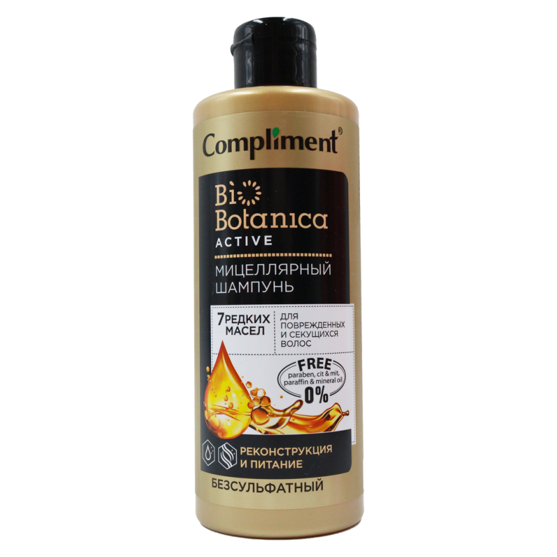 Шампунь Compliment с 7 редкими маслами - идеальное решение для ваших поврежденных и секущихся волос. Этот продукт обогащен уникальным составом масел, которые питают и увлажняют волосы, делая их мягкими и блестящими. Вы можете использовать этот шампунь как часть вашего ежедневного ухода за волосами или как интенсивное лечение для восстановления и укрепления волос. Попробуйте этот шампунь совместно с кондиционером из той же серии для максимального эффекта. Ухаживайте за своими волосами с шампунем Compliment и наслаждайтесь здоровыми и красивыми локонами каждый день!