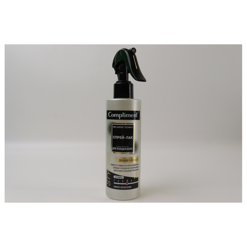 Спрей-лак для укладки волос Compliment Pro-Expert Technics в объеме 200 мл - это профессиональное средство для создания идеальной укладки без утяжеления. Его специальная формула обеспечивает надежную фиксацию прически, придавая волосам естественный блеск и объем. Этот спрей легко наносится и быстро сохнет, не оставляя липкости или остатков. Он подходит для любого типа волос и позволяет создать любой желаемый стиль с легкостью и надежностью.
