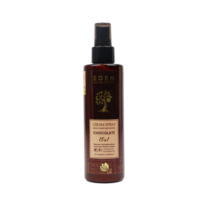 Насыщенный шоколадом крем-спрей для волос Eden Detox Chocolate 15 в 1 - это идеальное сочетание ухода и стиля. Уникальная формула обогащена натуральными экстрактами, которые питают и увлажняют волосы, делая их мягкими и блестящими. Этот удивительный продукт не только ухаживает за волосами, но и обеспечивает защиту от вредного воздействия окружающей среды. нанесите небольшое количество крем-спрея на влажные волосы перед укладкой или на сухие волосы для придания блеска и увлажнения. Для дополнительного ухода можно использовать как маску, оставив на волосах на ночь. Не упустите шанс попробовать этот удивительный крем-спрей для волос Eden Detox Chocolate 15 в 1 и преобразить свои волосы сегодня!