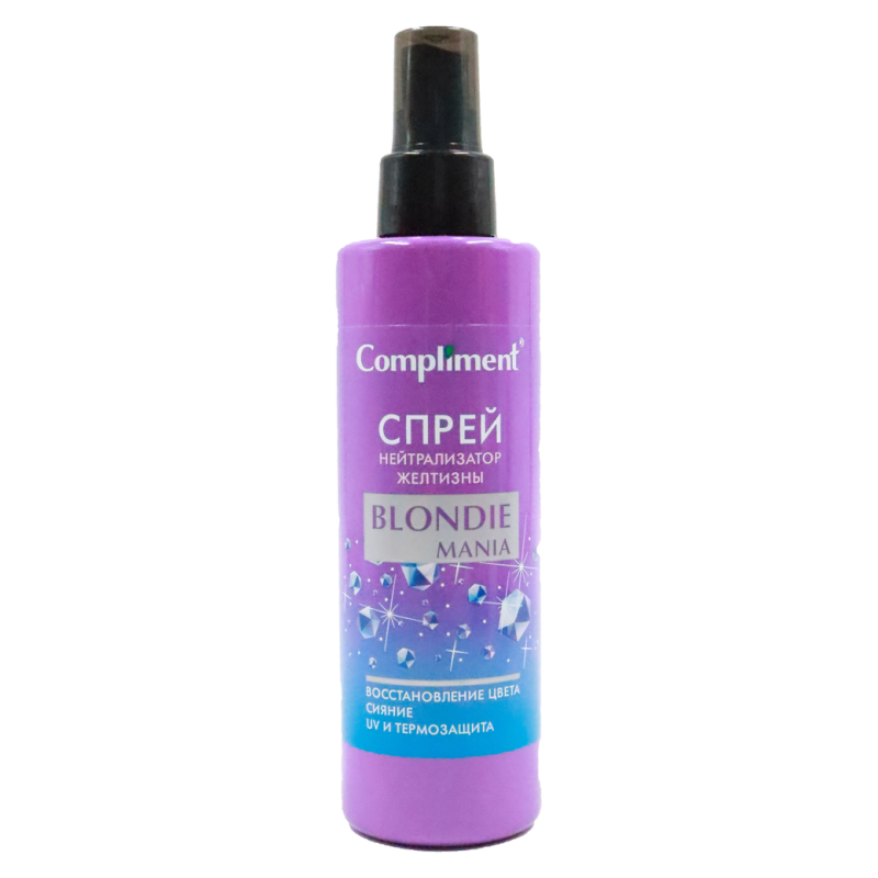 Преобразуйте свои волосы с помощью спрея-нейтрализатора желтизны Compliment Blondie Mania! Этот продукт идеально подходит для блондинок, которые хотят избавиться от нежелательных желтых оттенков и придать своим волосам яркость и сияние. Спрей легко наносится на влажные или сухие волосы, обеспечивая мгновенный результат. Вы можете использовать его перед укладкой или в качестве освежителя ваших прядей в течение дня. Попробуйте Compliment Blondie Mania и почувствуйте разницу уже сегодня!