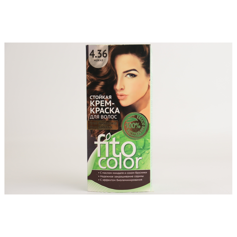 Крем-краска для волос Fitocolor в оттенке 4.36 «Мокко» предназначена для окрашивания волос в теплый мокко-шоколадный оттенок. Перед использованием рекомендуется провести тест на аллергию и ознакомиться с инструкцией, прилагаемой к продукту.