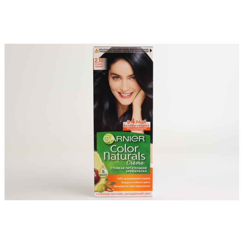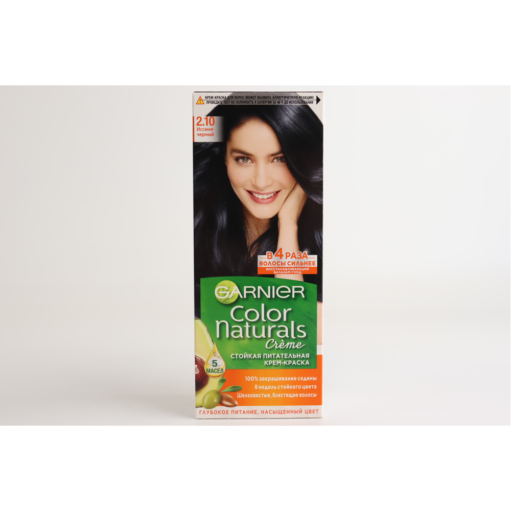 Краска для волос Garnier Color Naturals 2.10 «Черный опал» создает насыщенный и глубокий черный цвет с эффектом опалесценции. Она обогащена ухаживающими компонентами, которые помогают сохранить здоровье и блеск волос.