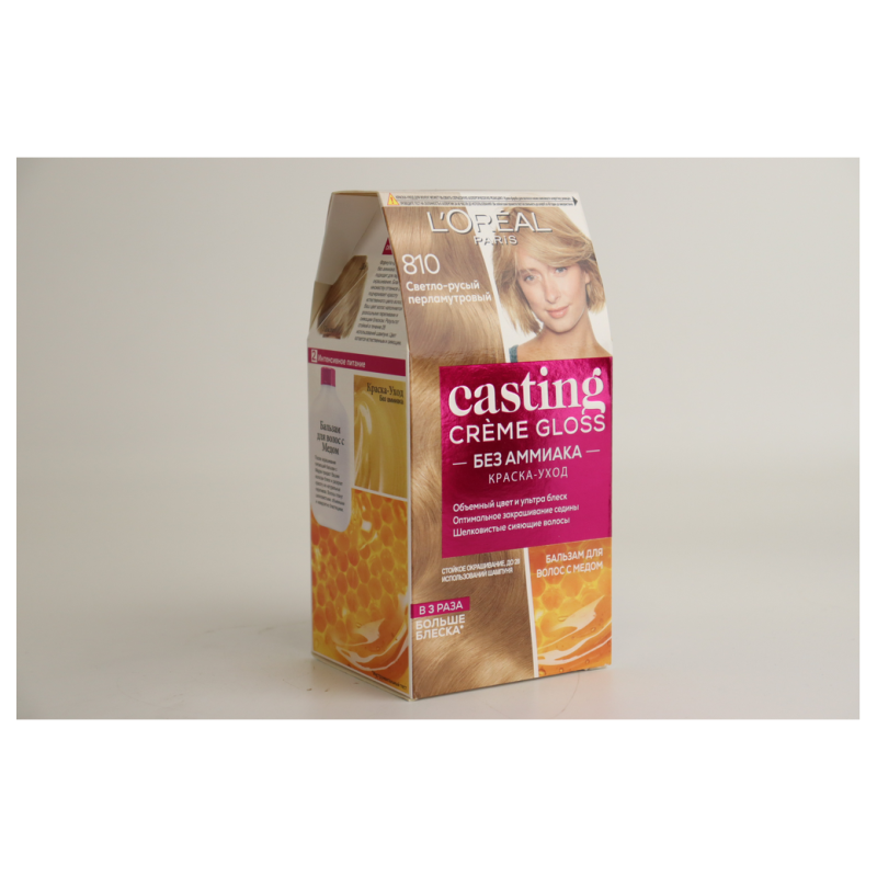Оттенок 810 «Перламутровый русый» (Pearl Blonde) в краске для волос Casting Creme Gloss создает красивый перламутровый блеск и придает волосам натуральный и яркий светло-русый оттенок с нежными перламутровыми отблесками. Этот оттенок добавляет волосам яркость и живость, делая их более сияющими и здоровыми. Формула краски обогащена ухаживающими компонентами, которые питают и увлажняют волосы, делая их мягкими и шелковистыми.