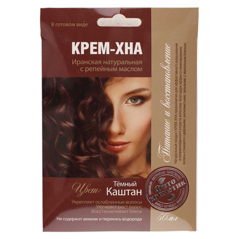 Хна-крем в готовом виде «Темный/каштан с репейным маслом» объемом 50 мл - это инновационное средство для окрашивания волос, созданное на основе натуральной хны с добавлением питательного репейного масла. Его уникальная формула обеспечивает стойкое и насыщенное окрашивание, придавая волосам темно-каштановый оттенок, а также ухаживает за волосами, делая их мягкими и блестящими. Готовый к использованию хна-крем облегчает процесс окрашивания, делая его быстрым и удобным. Результатом будет яркий и насыщенный цвет волос, при этом волосы будут здоровыми и ухоженными благодаря питательным свойствам репейного масла.