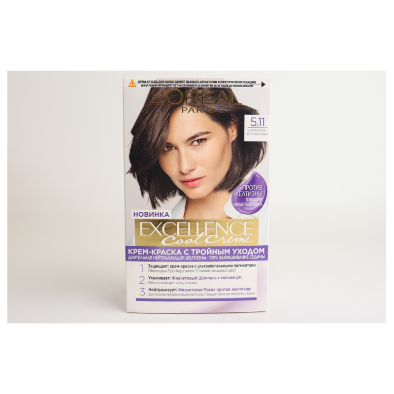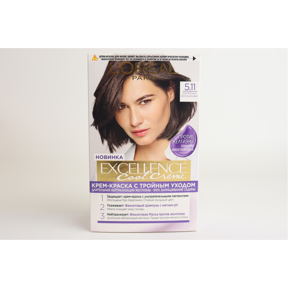 Краска для волос L'Oréal Paris Excellence Crème с оттенком 5.11 «Светлый каштан» обеспечивает интенсивное, стойкое и равномерное окрашивание. Этот оттенок придает волосам нежный светлый каштановый оттенок с прохладными подтона. Формула краски содержит питательные компоненты, которые помогают сохранить здоровье волос и делают их мягкими и блестящими. Благодаря удобной текстуре краски и прилагаемым инструкциям нанесение становится простым и эффективным, обеспечивая профессиональные результаты прямо у вас дома.