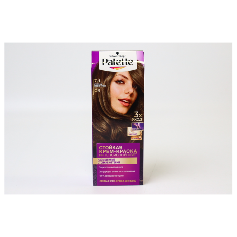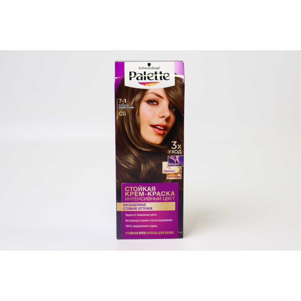 Краска Palette C6 Холодный Средний Русый - это, вероятно, оттенок среднего русого цвета с холодным подтоном, предназначенный для окрашивания волос. Palette предлагает разнообразные оттенки и продукты для окрашивания волос, в том числе краски с различными оттенками русого.