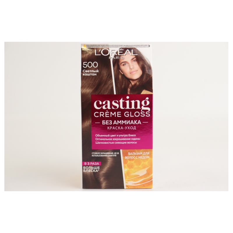 Оттенок 500 «Светлый каштан» (Light Brown) в краске для волос Casting Creme Gloss обеспечивает натуральный и свежий вид светлого каштанового цвета. Этот оттенок придает волосам теплоту и яркость, создавая натуральный и сияющий образ. Формула без аммиака делает процесс окрашивания более мягким и менее раздражающим для волос и кожи головы.