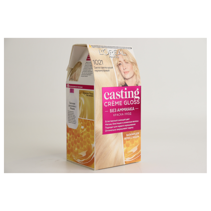 Краска для волос L'Oreal Casting Crème Gloss с оттенком 1021 «Светлый русый / Перламутр» обеспечивает мягкое и стойкое окрашивание волос. Этот оттенок создает красивый светлый русый цвет с перламутровым оттенком, который добавляет волосам блеск и сияние. Формула краски без аммиака обогащена ухаживающими компонентами, которые делают волосы мягкими и гладкими. Простое и удобное нанесение краски позволяет получить профессиональный результат прямо у вас дома.