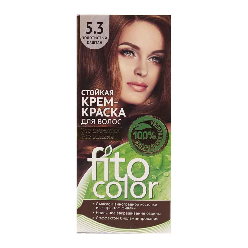 Крем-краска для волос Fitocolor в оттенке 5.3 «Золотой каштан» предназначена для окрашивания волос в теплый золотисто-каштановый оттенок. Перед использованием рекомендуется провести тест на аллергию и ознакомиться с инструкцией, прилагаемой к продукту.