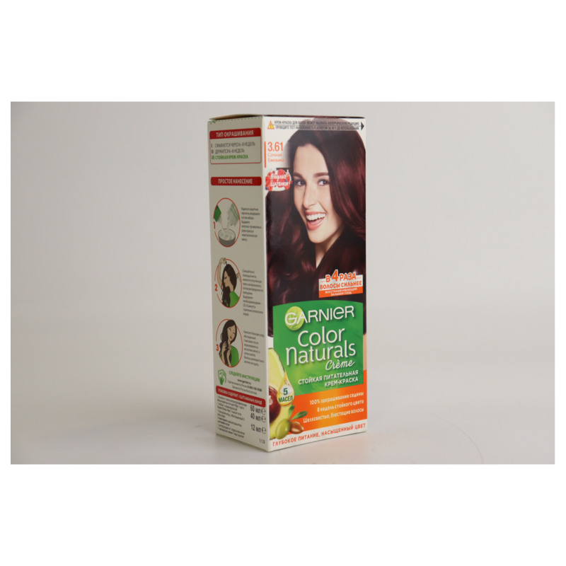 Краска для волос Garnier Color Naturals 3.61 «Сочная ежевика» обеспечивает интенсивный и насыщенный оттенок ежевики, который придает волосам яркость и глубокий цвет.