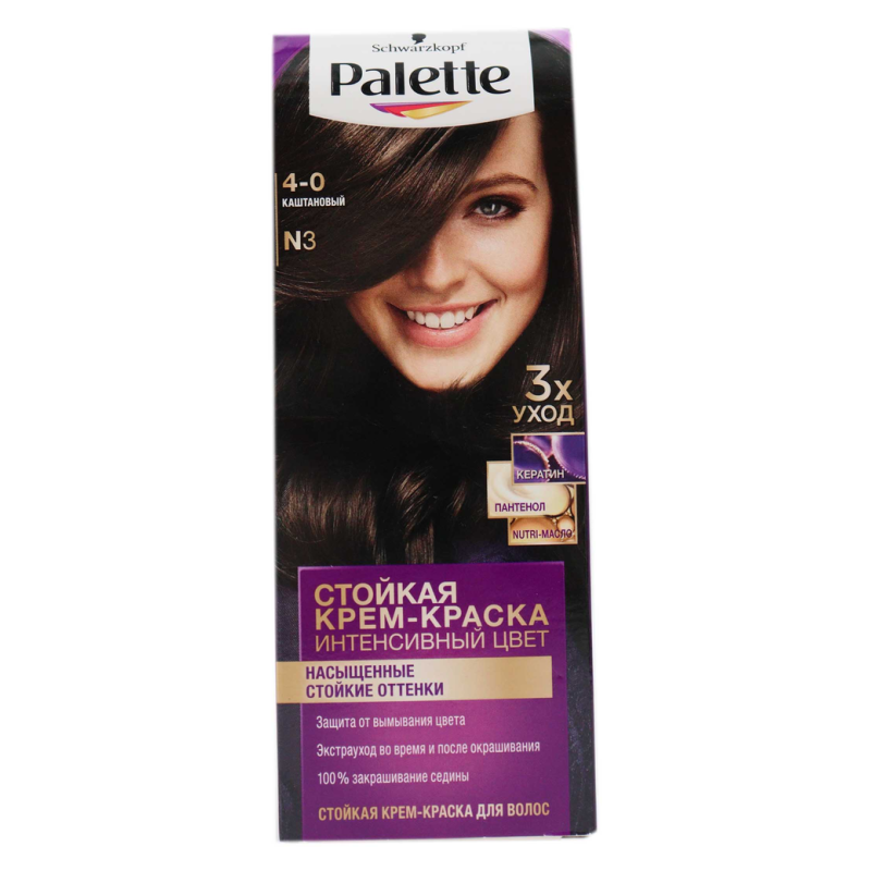 Краска Palette N3 «Каштан» предназначена для окрашивания волос в оттенок каштана. Этот оттенок придает волосам теплый и естественный вид. Рекомендуется провести предварительный тест на аллергию и ознакомиться с инструкциями по применению перед использованием.