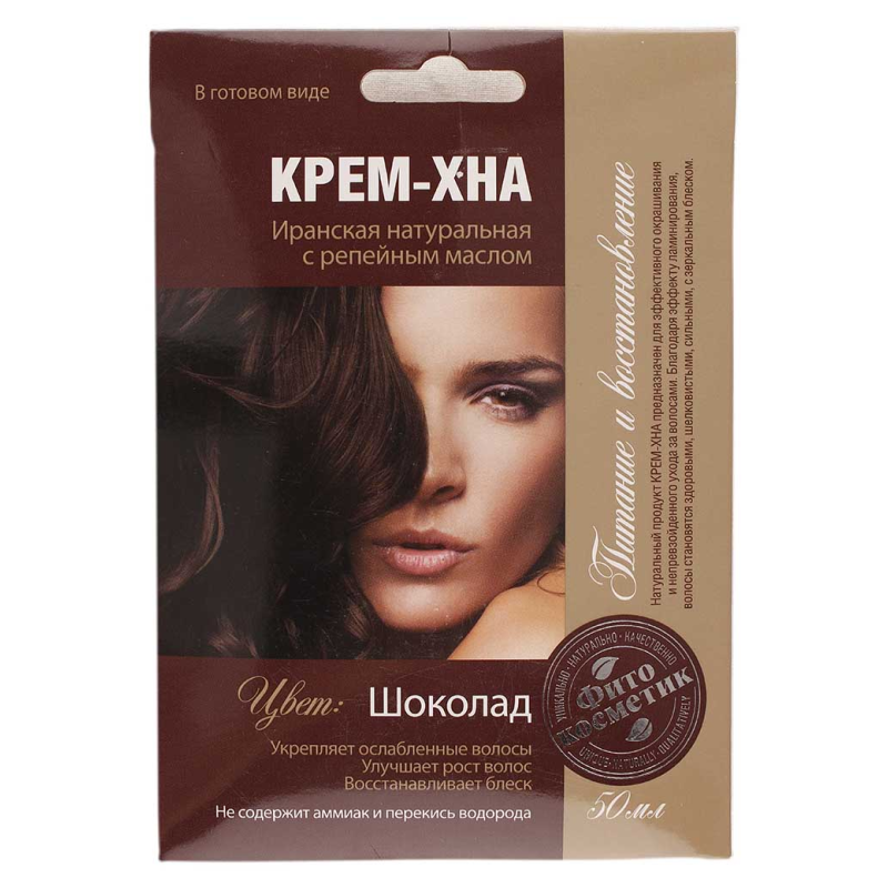 Хна-крем в готовом виде «Шок с репейным маслом» объемом 50 мл - это инновационное средство для окрашивания волос, которое сочетает в себе натуральную хну и питательное репейное масло. Его уникальная формула обеспечивает стойкое и насыщенное окрашивание, создавая яркий и выразительный шоколадный оттенок волос. Кроме того, репейное масло ухаживает за волосами, придавая им мягкость, блеск и увлажнение. Готовый к использованию хна-крем делает процесс окрашивания простым и удобным, а результатом станут красивые, здоровые и блестящие волосы с насыщенным шоколадным оттенком.