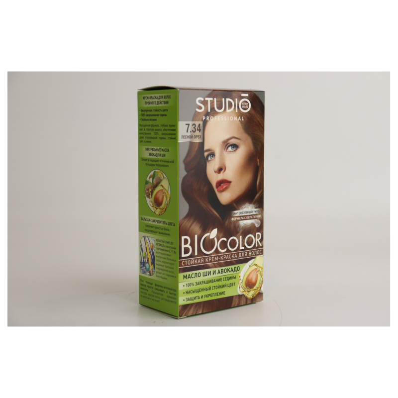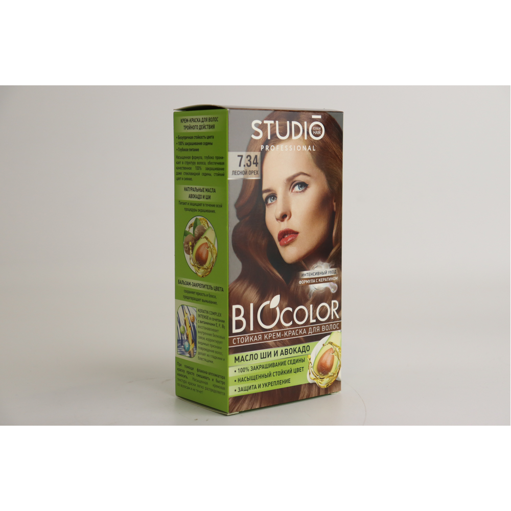 Крем-краска для волос Biocolor Studio Prof в оттенке Т7.34 «Лесной орех» предназначена для окрашивания волос в теплые оттенки средне-русого с золотистыми и медными нотками. Перед использованием рекомендуется провести тест на аллергию и ознакомиться с инструкциями, прилагающимися к продукту, для достижения желаемого результата окрашивания.