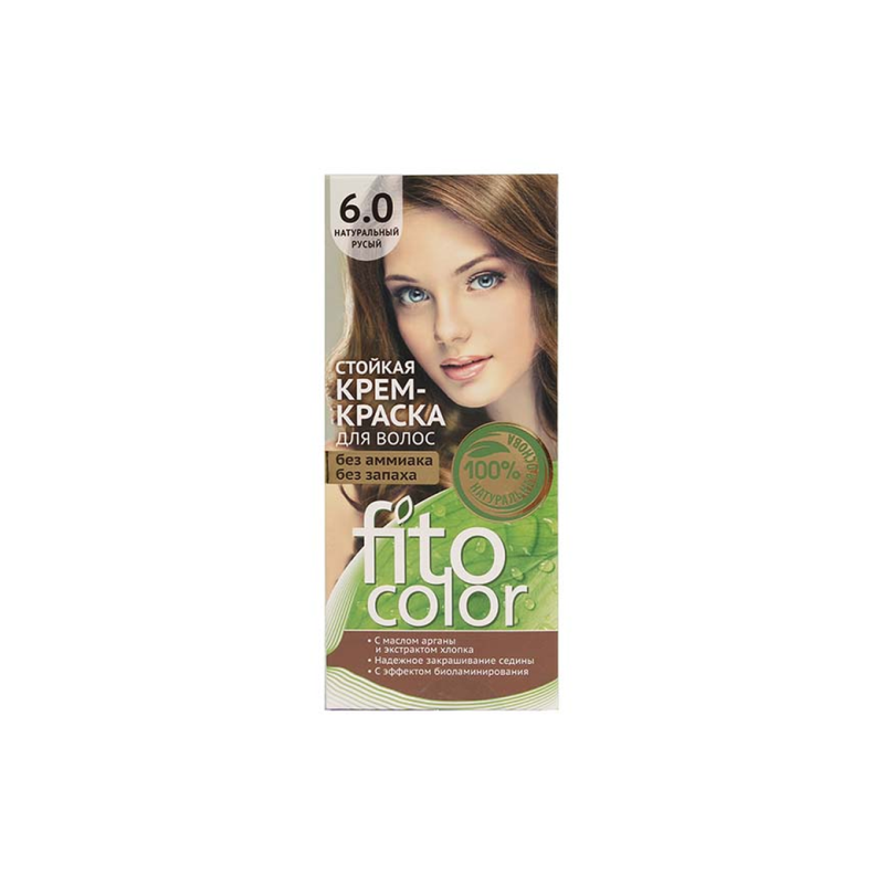 Крем-краска для волос Fitocolor в оттенке 6.0 «Натуральный русый» обеспечивает природный русый цвет волос. Перед использованием рекомендуется провести тест на аллергию и внимательно ознакомиться с инструкцией, прилагаемой к продукту.