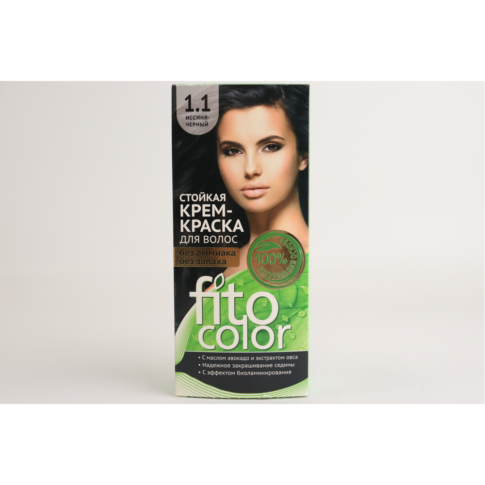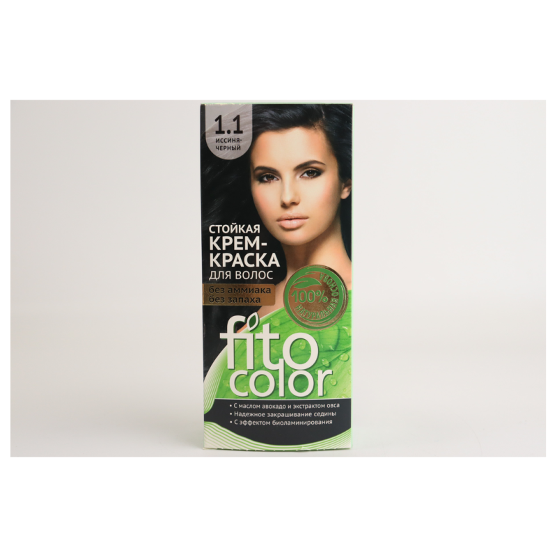 Крем-краска для волос Fitocolor в оттенке 1.1 «Тон иссин/черный» предназначена для окрашивания волос в насыщенный черный цвет с иссиня-черным оттенком. Перед использованием рекомендуется провести тест на аллергию и ознакомиться с инструкцией, прилагаемой к продукту.