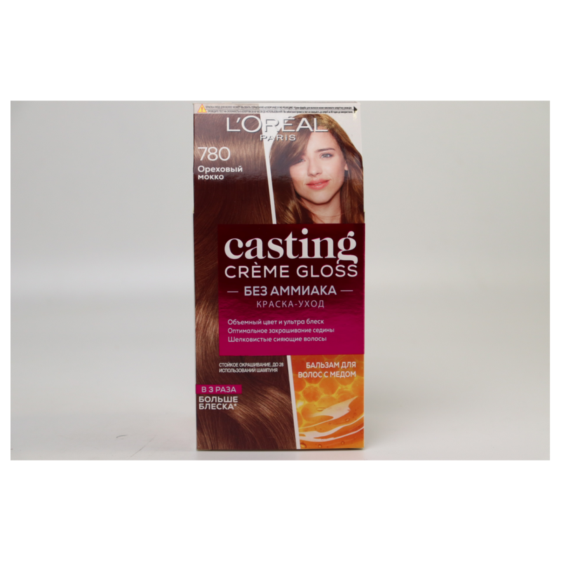 Оттенок 780 «Орех мокко» (Nut Mocha) в краске для волос Casting Creme Gloss придает волосам глубокий и насыщенный темно-коричневый оттенок с теплыми мокко-оттенками. Этот оттенок создает элегантный и стильный образ, подходящий как для повседневного, так и для особенных случаев. Формула краски обогащена ухаживающими компонентами, которые делают волосы мягкими, гладкими и шелковистыми, а отсутствие аммиака позволяет сохранить их здоровье.