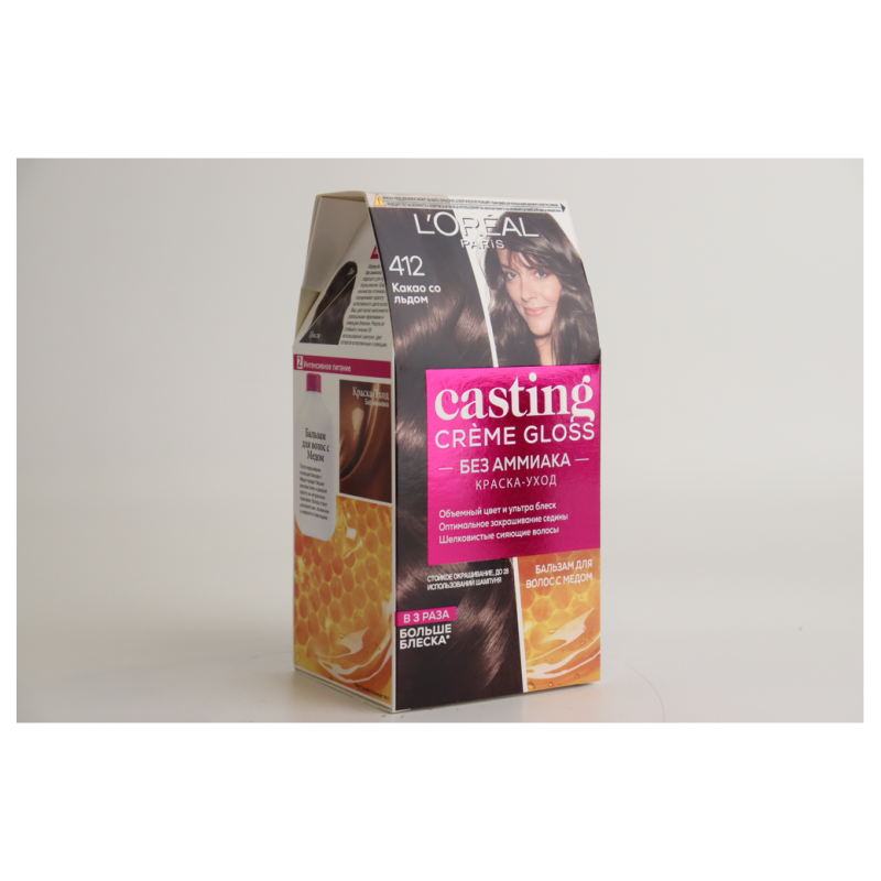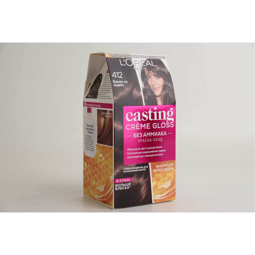 Краска для волос Casting Creme Gloss в оттенке 412 Какао с льдом (Iced Cocoa) создает глубокий и насыщенный цвет, напоминающий оттенок какао с легкими прохладными оттенками. Этот оттенок обладает шоколадными тонами, которые придают волосам глубокий и насыщенный оттенок. Формула краски без аммиака помогает сохранить здоровье волос, делая их мягкими и блестящими.