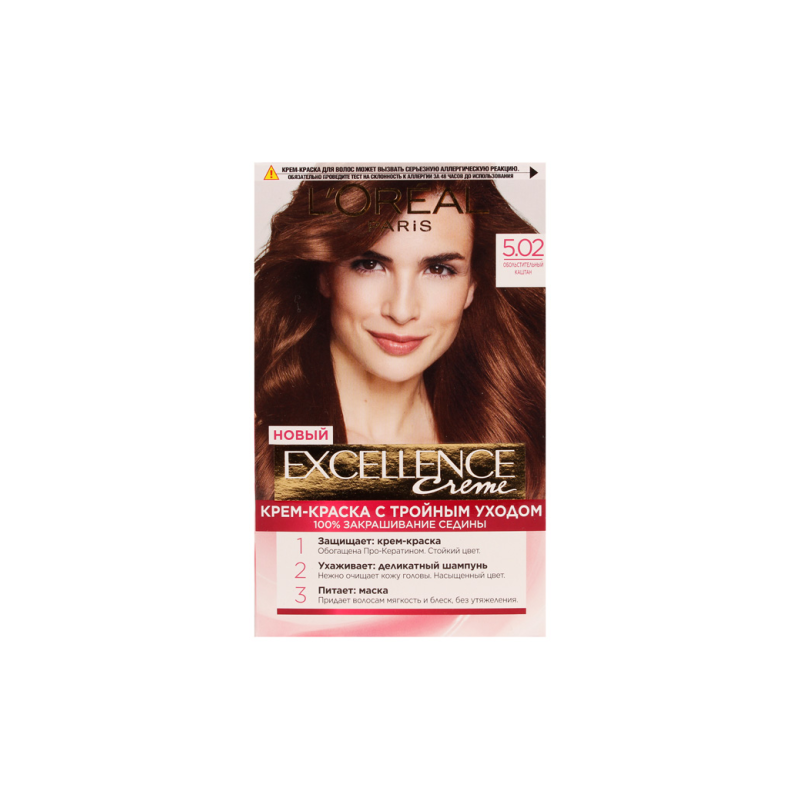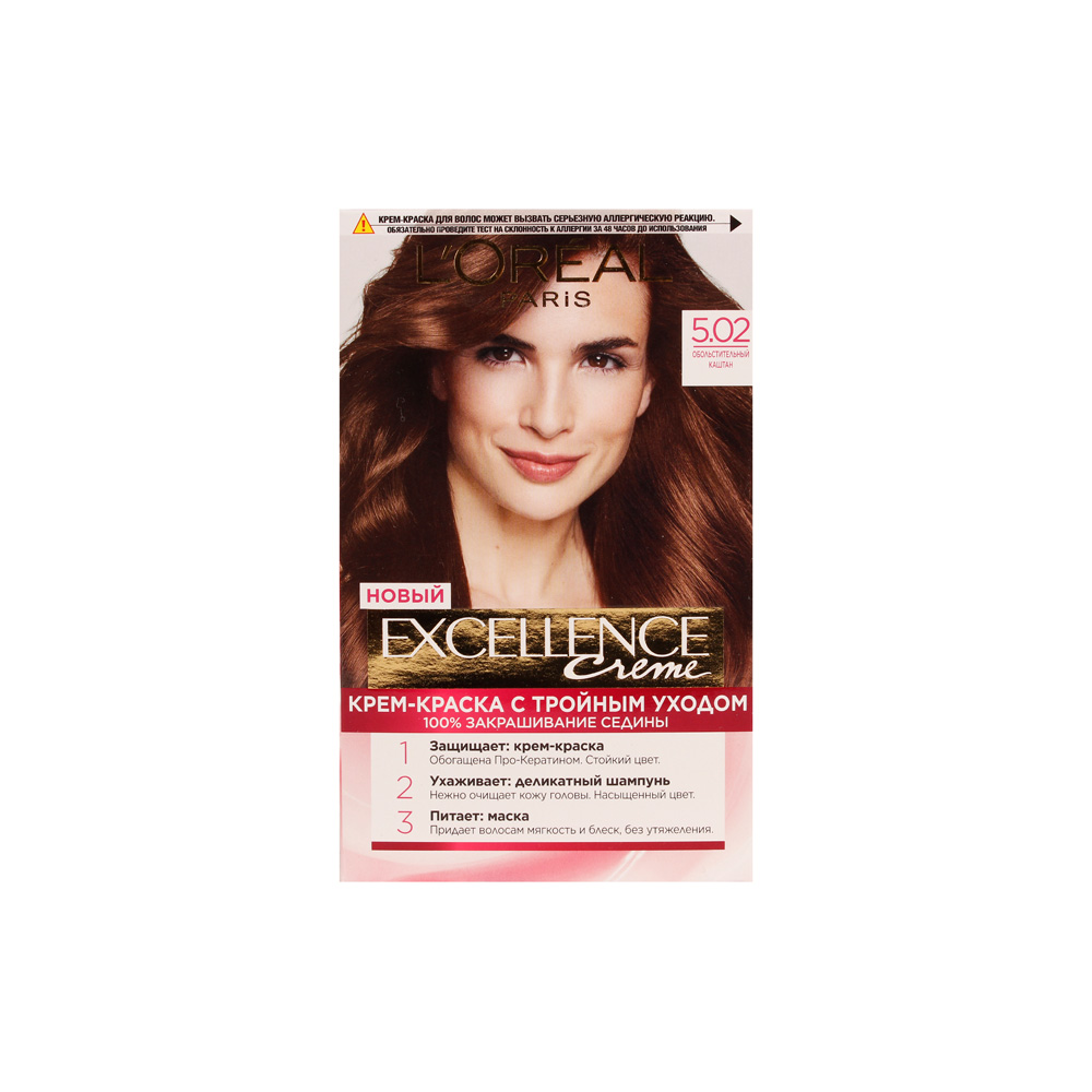 Краска для волос L'Oréal Excellence в оттенке «Обольстительный Каштан 5.02» предлагает богатый и интенсивный цвет. Этот оттенок придает волосам теплый и глубокий каштановый оттенок, добавляя им яркость и блеск.