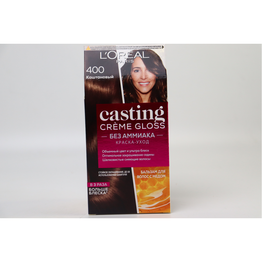 Краска для волос Casting Creme Gloss в оттенке 400 Каштан (Dark Brown) создает теплый и естественный цвет, напоминающий оттенок каштана. Этот оттенок обладает глубокими коричневыми тонами, которые придают волосам естественное сияние и объем. Формула краски без аммиака помогает сохранить здоровье волос, делая их мягкими и шелковистыми.
