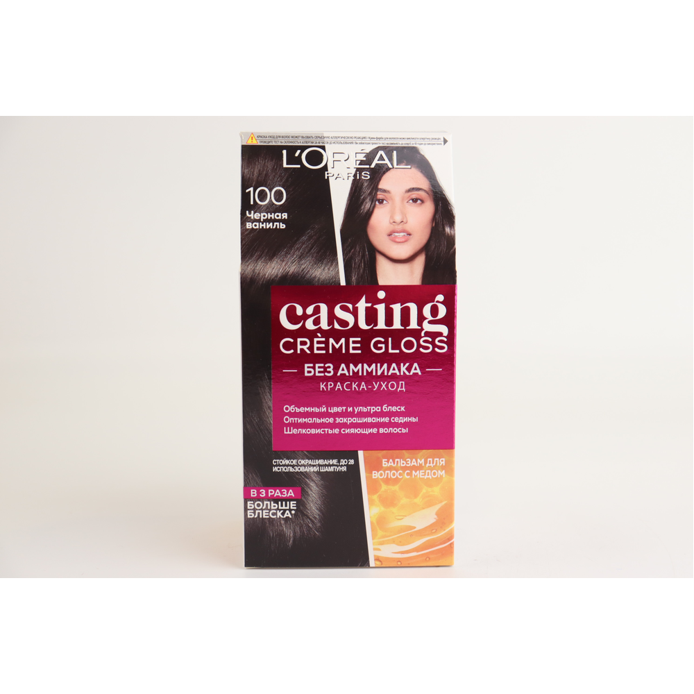 Краска для волос Casting Creme Gloss в оттенке 100 черный ванна (Black Liquorice) предоставляет интенсивный черный цвет с блеском. Эта краска, разработанная L'Oreal, обещает стойкость и блеск, при этом сохраняя здоровье ваших волос. Оттенок черного ванны подходит для тех, кто предпочитает глубокий, насыщенный цвет без оттенков.