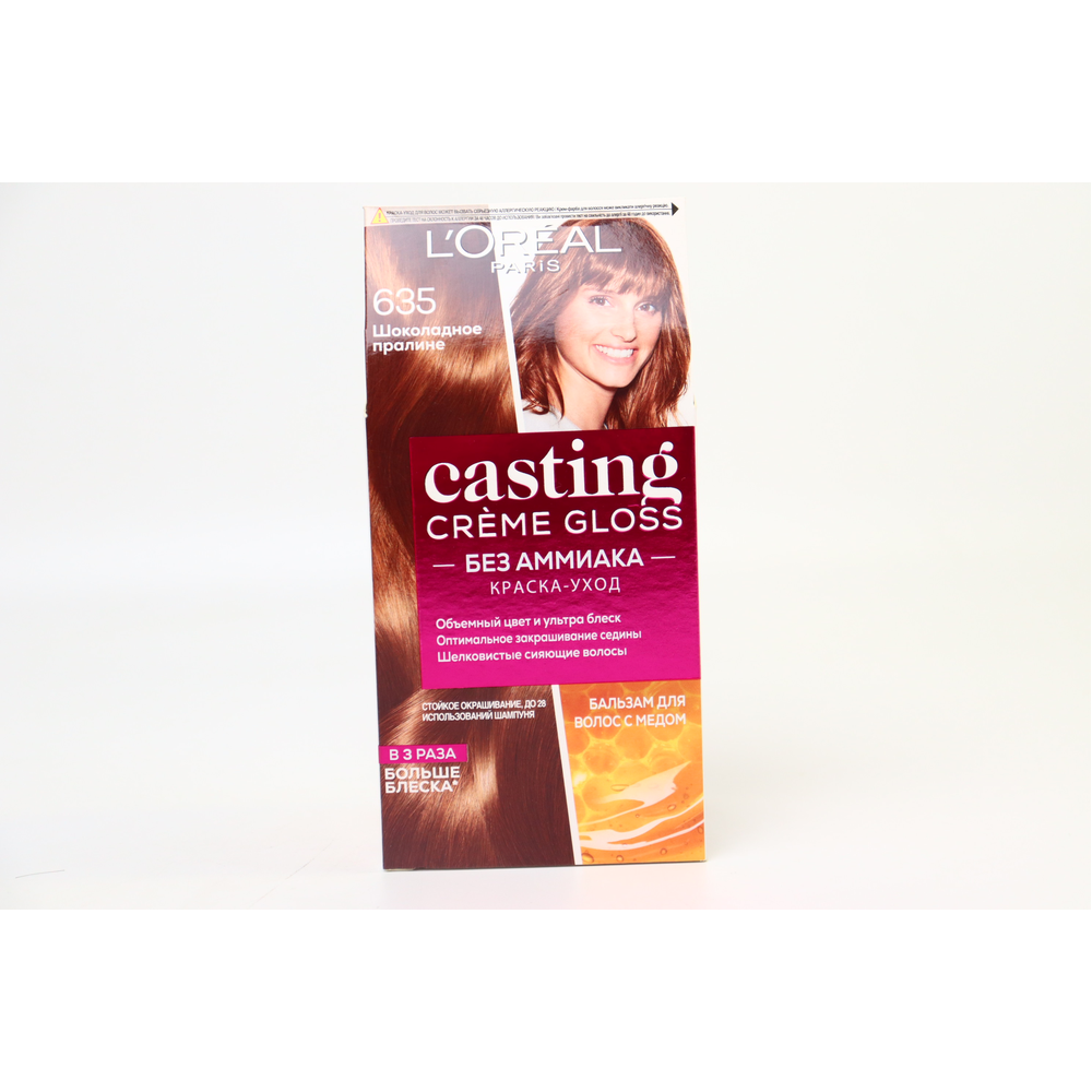 Крем-краска для волос Casting Gloss 635 «Шок Пралине» - идеальное решение для тех, кто хочет добавить яркости и блеска своим волосам. Этот продукт обеспечивает равномерное покрытие волос, придавая им насыщенный оттенок шоколада с нотками пралине. Вы можете использовать эту краску как для окрашивания всей головы волос, так и для создания красивых мелированных эффектов. Попробуйте этот продукт прямо сейчас и дайте вашим волосам новый яркий оттенок!