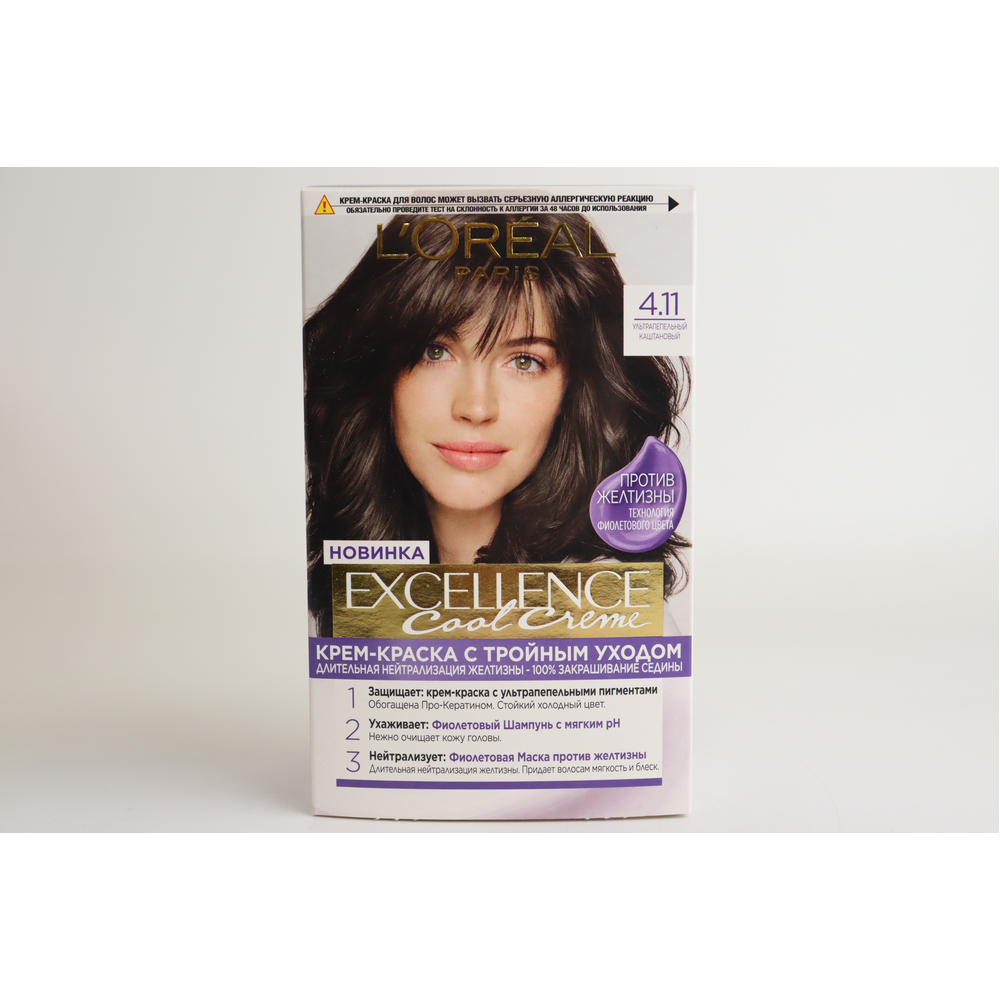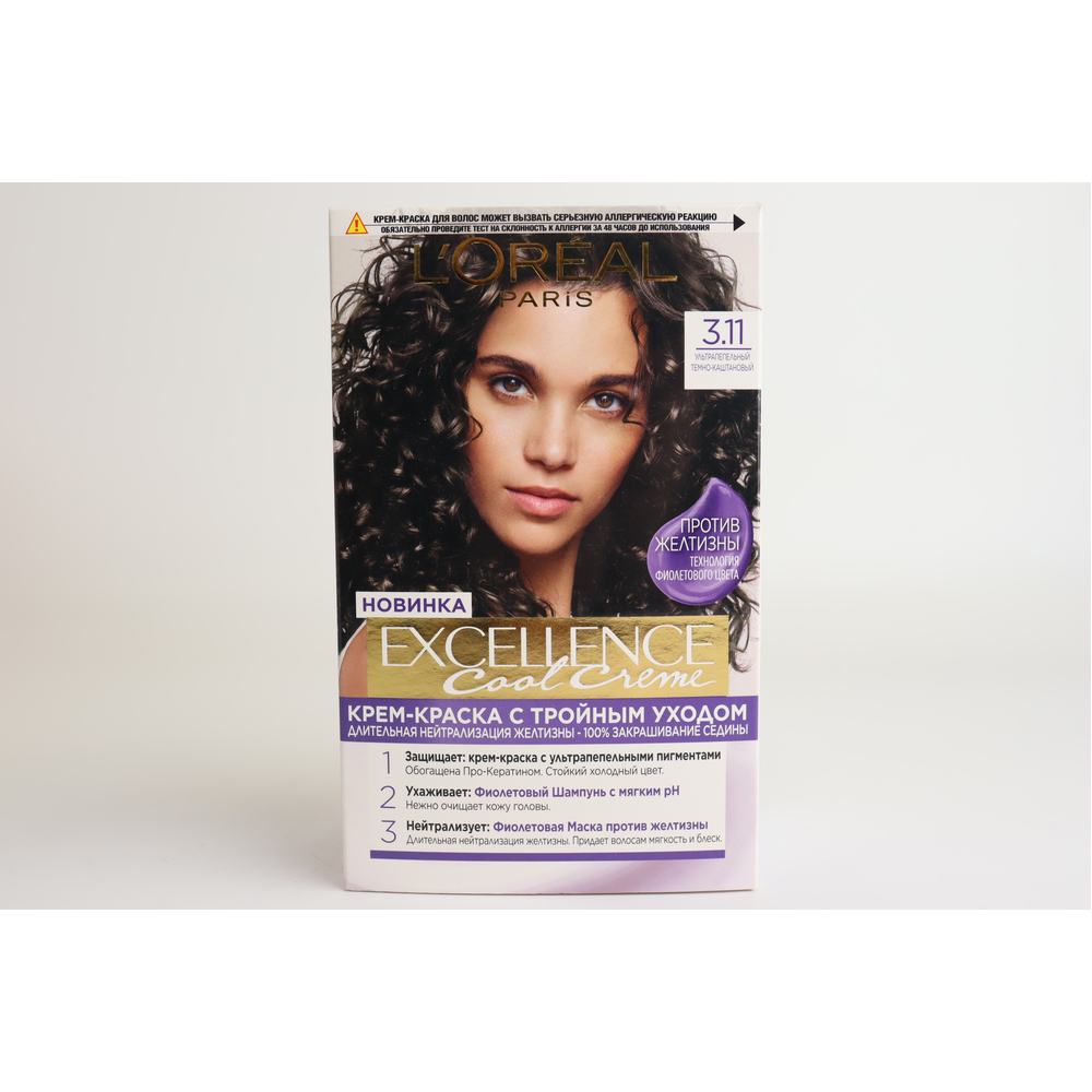 Краска для волос L'Oréal Excellence Crème с оттенком 3.11 «Темный каштан» обеспечивает долговременное и интенсивное окрашивание волос. Этот оттенок создает насыщенный темный каштановый цвет, который придает волосам глубину и блеск. Формула краски содержит ухаживающие ингредиенты, такие как протеины и кератин, которые помогают укрепить волосы и сделать их более гладкими и блестящими. Краска легко наносится и равномерно распределяется по всей длине волос, обеспечивая естественный и стойкий результат окрашивания.
