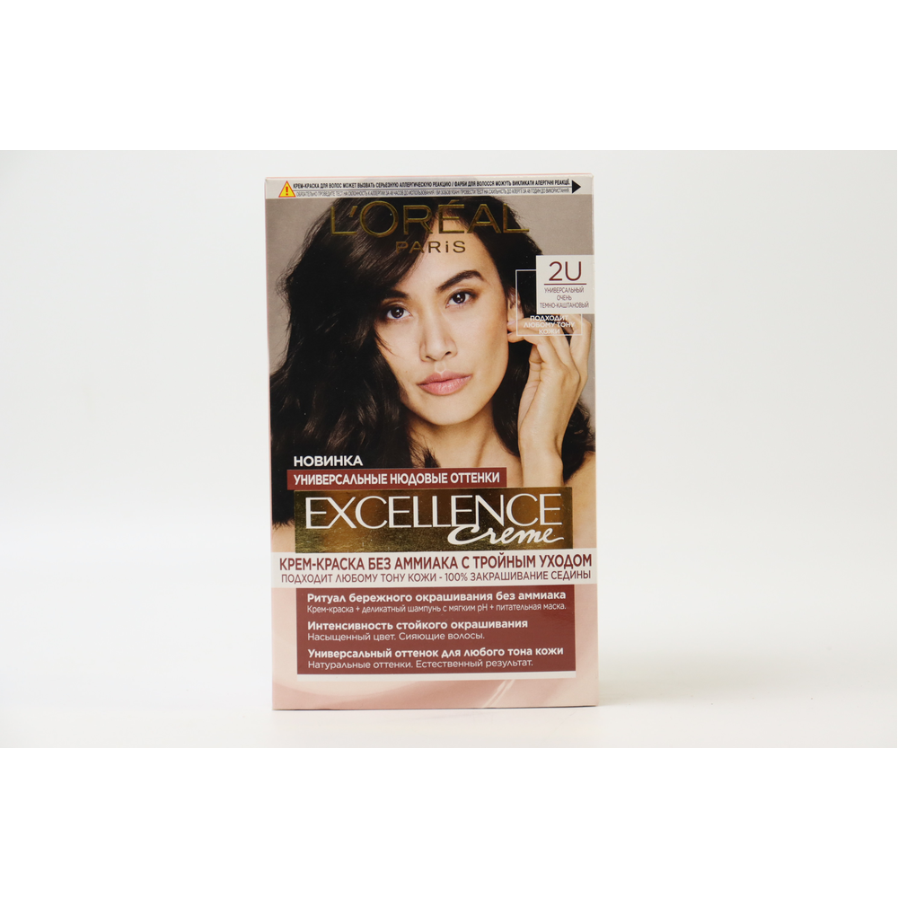 Крем-краска для волос Excellence Crème 2U - это инновационный продукт, созданный для получения очень темного каштанового оттенка волос. Его уникальная формула обеспечивает интенсивное окрашивание и продолжительное сохранение цвета. Благодаря встроенным ухаживающим компонентам крем-краска также питает и увлажняет волосы, делая их мягкими и блестящими.