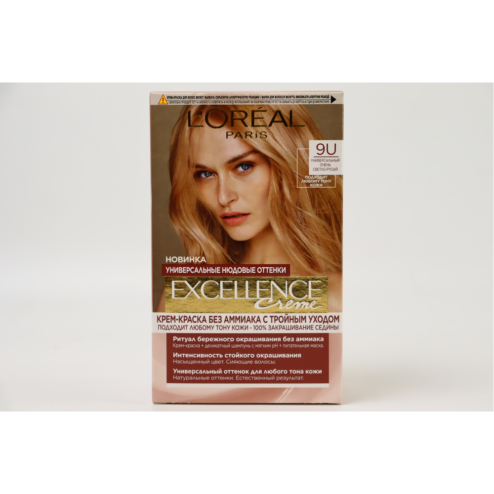 Краска для волос L'Oréal Excellence в оттенке «Универсальный светло-русый 9U» создает нежный и естественный цвет, придающий волосам яркий и привлекательный вид. Этот оттенок подчеркивает индивидуальность и натуральную красоту волос.