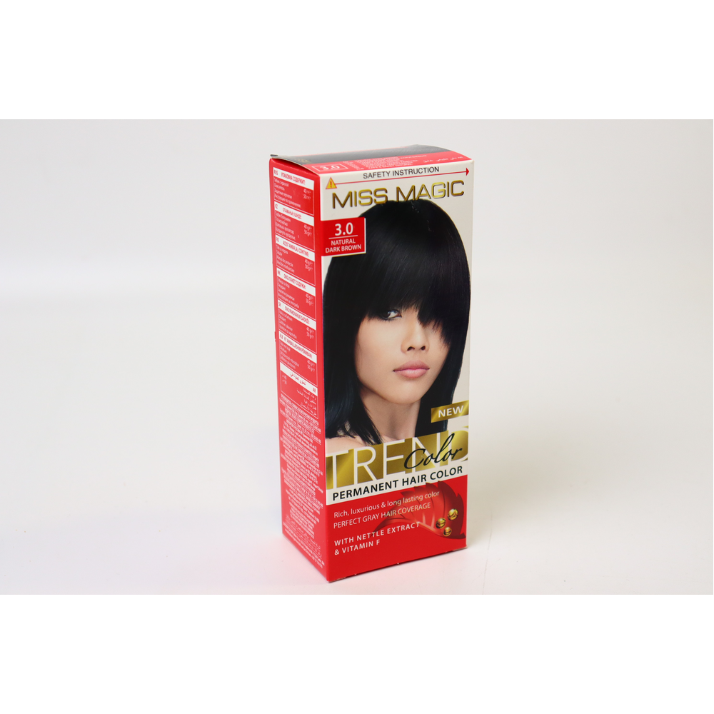 Преобразите свой образ с помощью краски для волос Miss Magic 3.0 в натуральном темно-коричневом оттенке. Этот продукт обеспечивает стойкое покрытие седины и придает волосам глубокий и насыщенный цвет. Вы можете использовать краску как для окрашивания целиком, так и для создания ярких акцентов. Попробуйте новый образ с Miss Magic 3.0 и ощутите магию перемен!