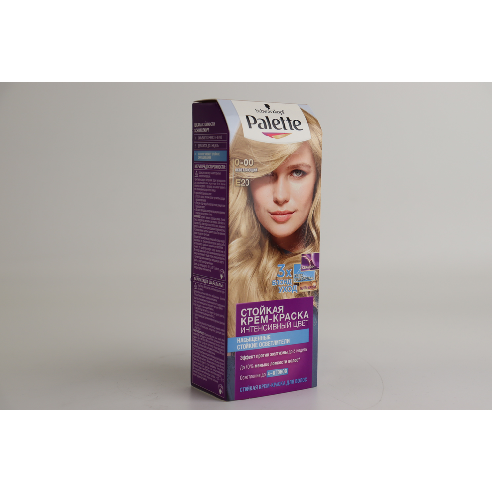 Краска Palette E20 «Осветляющий» предназначена для осветления волос. Она содержит специальные ингредиенты, которые помогают раскрыть естественный цвет волос и придать им более светлый оттенок. Однако конечный результат зависит от исходного цвета волос и времени выдержки краски. Рекомендуется провести предварительный тест на аллергию и ознакомиться с инструкциями по применению перед использованием.