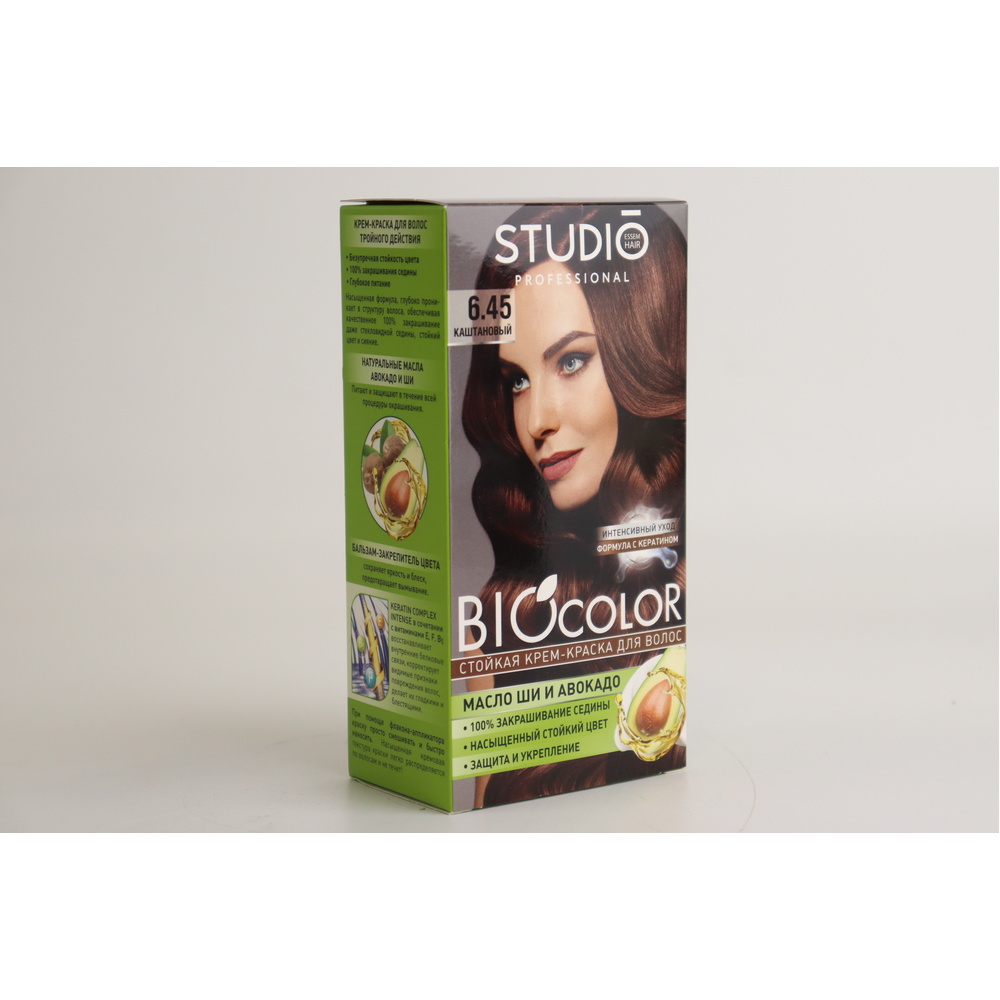Крем-краска для волос Biocolor Studio Prof в оттенке Т6.45 «Каштан» предназначена для окрашивания волос в каштановые тона с теплым подтоном. Перед использованием рекомендуется провести тест на аллергию и ознакомиться с инструкциями, прилагающимися к продукту, для достижения желаемого результата окрашивания.