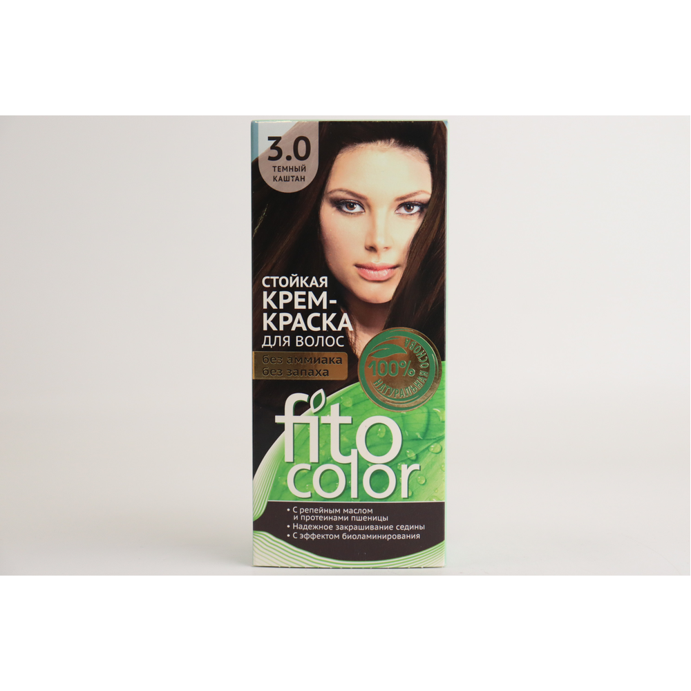 Крем-краска для волос Fitocolor в оттенке 3.0 «Тон темный каштан» предназначена для окрашивания волос в насыщенный темно-каштановый цвет. Перед использованием рекомендуется провести тест на аллергию и ознакомиться с инструкцией, прилагаемой к продукту.