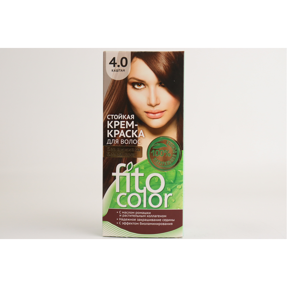 Крем-краска для волос Fitocolor в оттенке 4.0 «Каштан» предназначена для окрашивания волос в темный каштановый цвет. Перед использованием рекомендуется провести тест на аллергию и ознакомиться с инструкцией, прилагаемой к продукту.