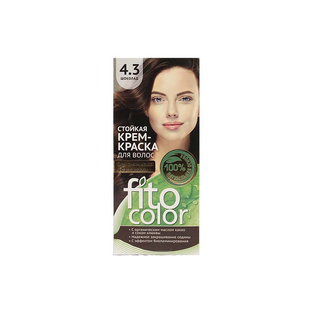 Крем-краска для волос Fitocolor в оттенке 4.3 «Шоколад» предназначена для окрашивания волос в шоколадный оттенок. Перед использованием рекомендуется провести тест на аллергию и ознакомиться с инструкцией, прилагаемой к продукту.