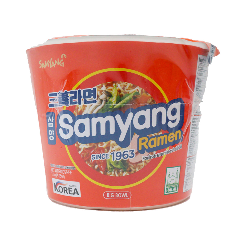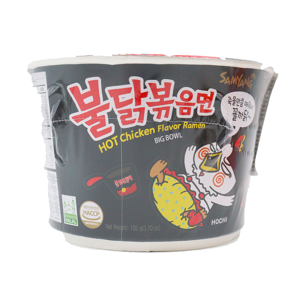 Лапша Samyang Hot Chicken Ramen Big Bowl - это большая порция куриной лапши с острым вкусом. Она содержит 105 г амм лапши, а также приправу и порошок для приготовления. Состав продукта: паста лапши (пшеница, кукурузный крахмал, пальмовое масло, пропан-2-ол, лимонная кислота, пищевая сода), приправа (соль, перец, морская соль, морковь, лук, пальмовое масло, пропан-2-ол, лимонная кислота, пищевая сода, глютамин, ароматизатор, порошок для приготовления (рисовая мука, пальмовое масло, пропан-2-ол, лим