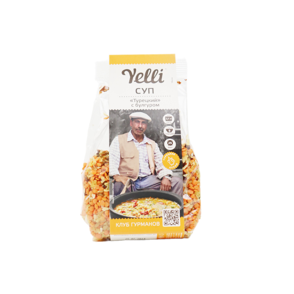 Суп-пюре Yelli из чечевицы готово в упаковке весом 250 г амм, вероятно, представляет собой готовый суп-пюре, приготовленный на основе чечевицы. Этот продукт, возможно, обогащен приправами и другими ингредиентами, чтобы придать ему характерный вкус и аромат.