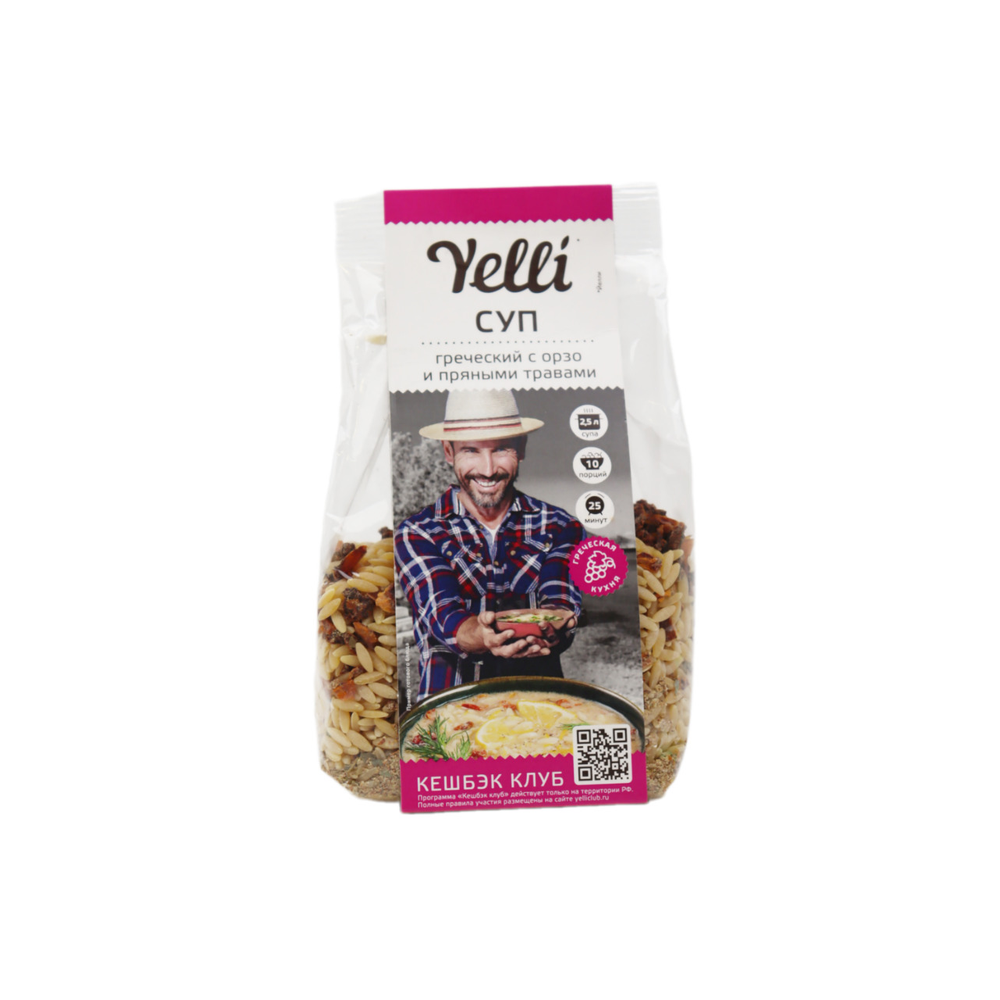 Суп греческий с орзо и пряными травами Yelli 250 г – это ароматный и вкусный суп, приготовленный из натуральных ингредиентов. Основные ингредиенты: орзо, пряные травы, лук, морковь, перец, масло растительное, морская соль, сахар, бульон куриный. Суп предлагается в удобной упаковке по 250 г амм.